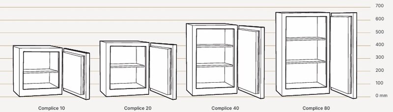 The Complice safe by Fichet-Bauche offers certified burglary protection (EN 1143-1, Grade 0 – A2P / ECB·S) and, in the 20, 40 and 80 litre models, 30 minutes fire resistance for paper (EN 15659 – LFS 30P).