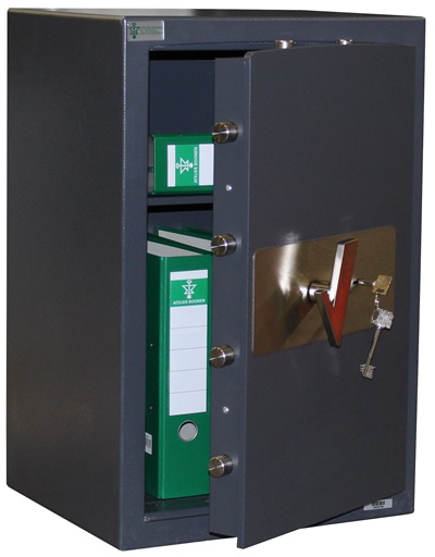 De kluis is voorzien van interne scharnieren en opent tot 90°, in een compact ontwerp zonder uitstekende delen. Standaard uitgerust met een EN 1300-gecertificeerd dubbelbaard sleutelslot, met optionele uitrusting met een mechanisch combinatieslot of elektronisch codeslot.