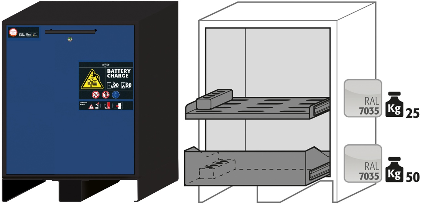 Asecos ION-CHARGE 90 – Veiligheidskast voor het laden van lithiumbatterijen